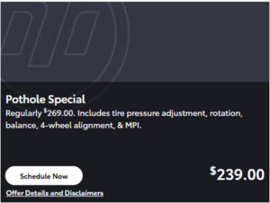 Heritage Owings Mills Pothole Special Baltimore Toyota Dealers ServiceHeritage Owings Mills Pothole Special Expiration Date: April 30, 2026